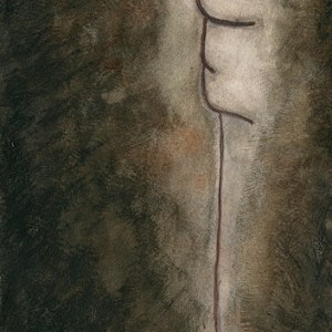 This painting is watercolor and Neocolor II on Canson Montval and is approximately 16″ x 9″.